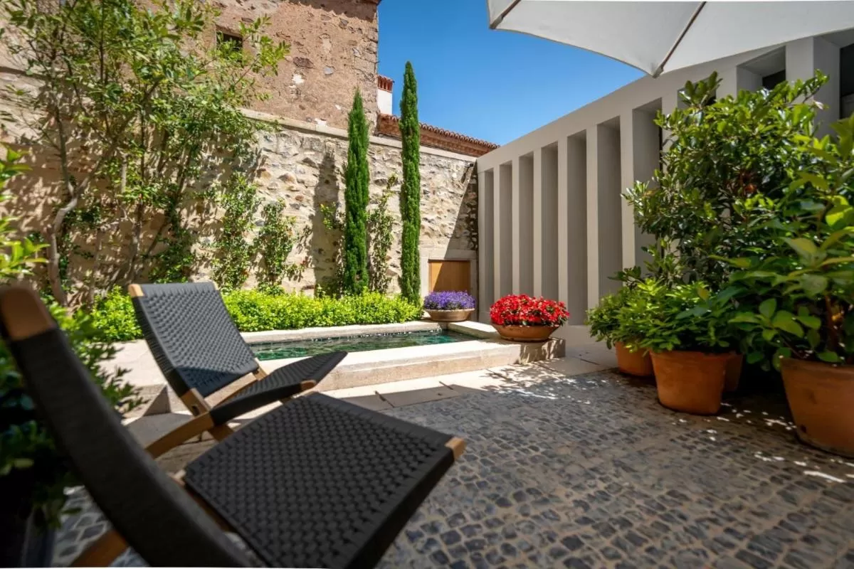 El Atrio Restaurante Hotel Relais & Chateaux, situado en Plaza San Mateo 1, 10003 Cáceres, España, es un establecimiento de lujo que combina una ubicación privilegiada en el casco histórico con una oferta gastronómica excepcional. A pocos pasos de monumentos emblemáticos como la Catedral y la Plaza Mayor, este hotel destaca por su atención al detalle y su compromiso con la excelencia. Las instalaciones incluyen dos piscinas, una de ellas ubicada en una terraza panorámica que ofrece vistas impresionantes, y un jardín con una galería de arte que enriquece la experiencia de los huéspedes.